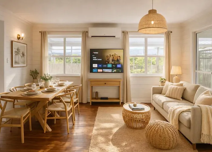 In der Villa 3Br Chic Urban Escape In Norman Park Near Bne With Parking stehen Gästen eine komplette Küche sowie ein Essbereich zur Verfügung. Sie können auch einen Wasserkocher, einen Kühlschrank und Küchenutensilien nutzen, um Ihre eigene Mahlzeit zuzubereiten. Etwa 650 Meter von hier entfernt finden Sie das Restaurant Sushi Kotobuki, das leckere Gerichte serviert. Die Villa in Brisbane liegt in unmittelbarer Nähe zum Busbahnhof Lytton Road at Scanlan Street 15a und bietet eine gute Anbindung an viele Sehenswürdigkeiten.